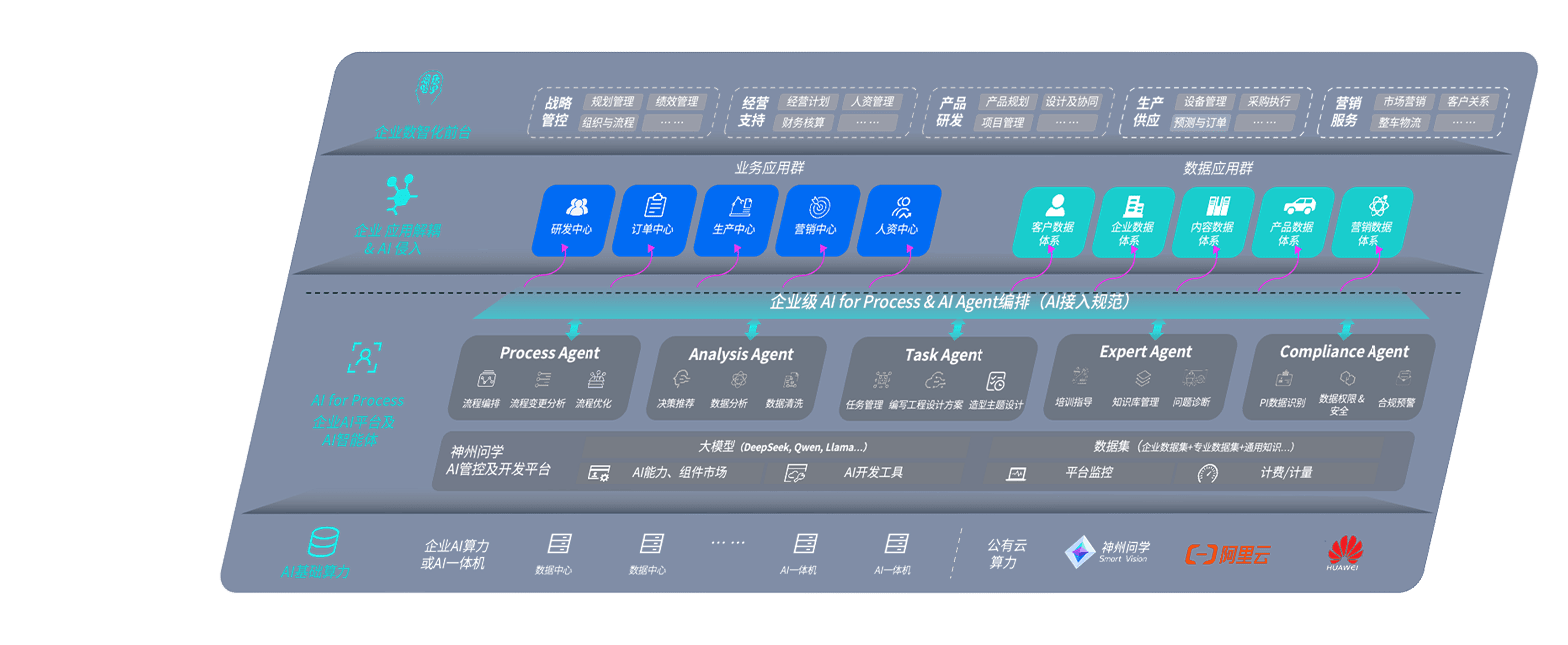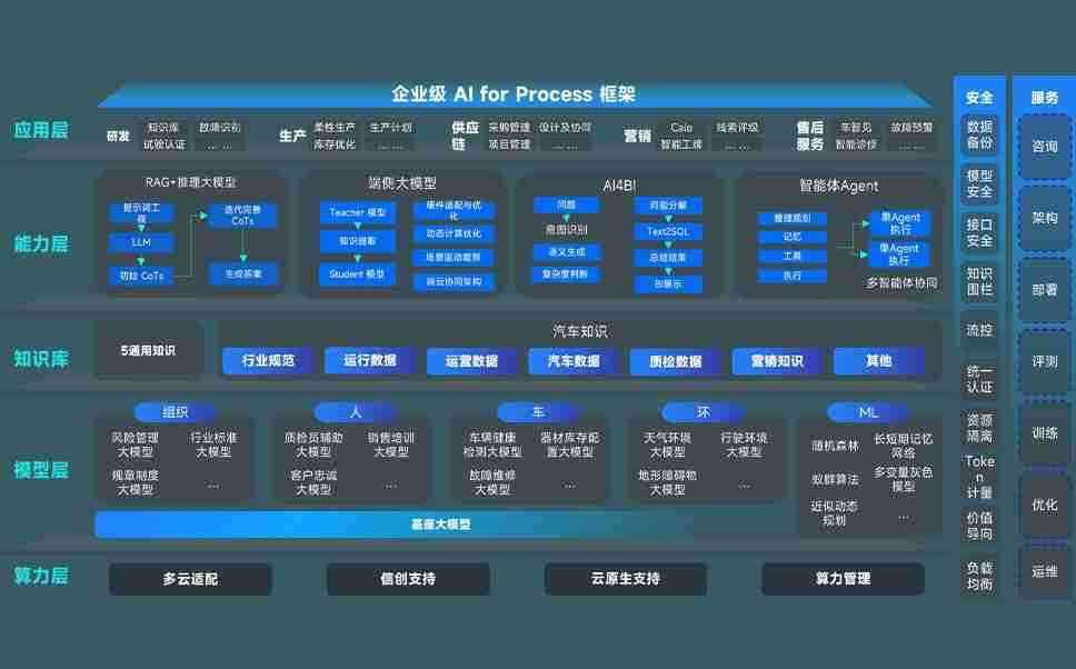 端到端的一站式AI工作空间深度融合了从企业战略规划到日常经营的全流程业务板块,,,,定向解决车企内部领域多、、、、部门多、、、、链条长、、、场景碎片化等难题,,支持车企快速构建以AI为核心的生产力写作体系,,,实现任务执行与AI能力的无缝集成与交互
